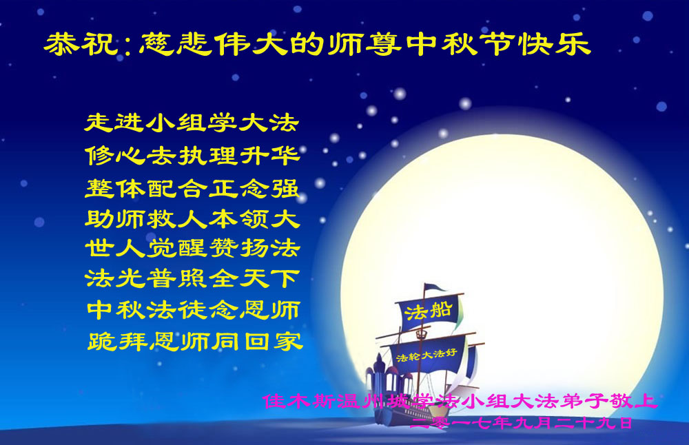 我们一定紧跟正法進程做好,走好以后的路,跟师父回家! 黑龙江省佳木斯一学法小组大法弟子恭祝师尊中秋节快乐!
