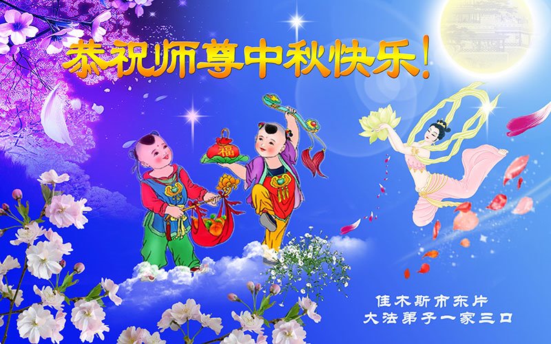 【明慧网二零一七年十月四日】 黑龙江省佳木斯一家三口大法弟子恭祝师尊中秋节快乐!