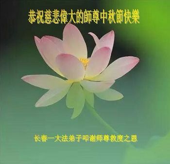 感谢师尊的慈悲救度,弟子一定踏踏实实的修好自己,做好三件事,不辜负师父的殷切期望。 吉林省通化市大法弟子敬祝师尊中秋快乐!