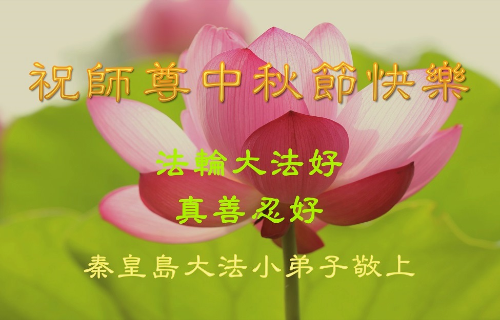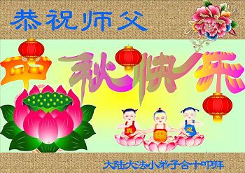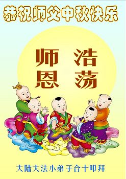师父好!弟子一定排除干扰、放下贪念和名利色情、配合好同修、带好小弟子、做好三件事、圆满随师还! 辽宁鞍山大法弟子恭祝师父中秋节快乐!