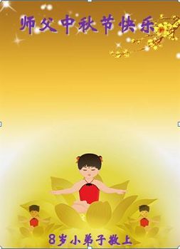 辽宁省抚顺市清原县六岁大法小弟子恭祝师尊中秋快乐!师父您好:祝师父中秋节快乐! 吉林省白城大法小弟子淼淼与姥姥家群体大法弟子祝师尊中秋节快乐!