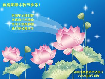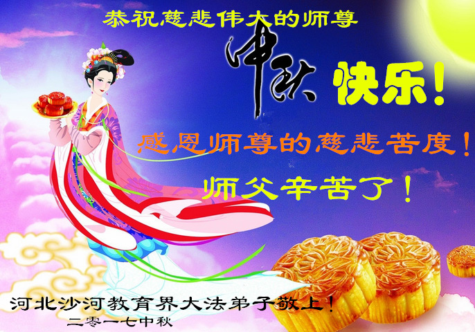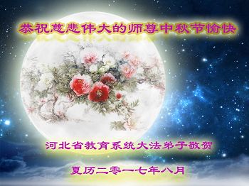 河北教育系统大法弟子敬贺 夏历二零一七年八月 浙江一青年新大法学员恭祝师尊中秋节快乐!