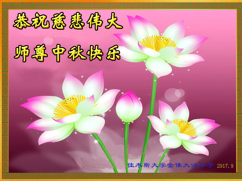 【明慧网二零一七年十月四日】 黑龙江省佳木斯大学全体大法弟子恭祝慈悲伟大的师尊中秋快乐!