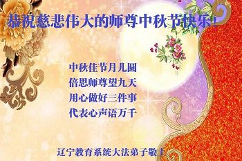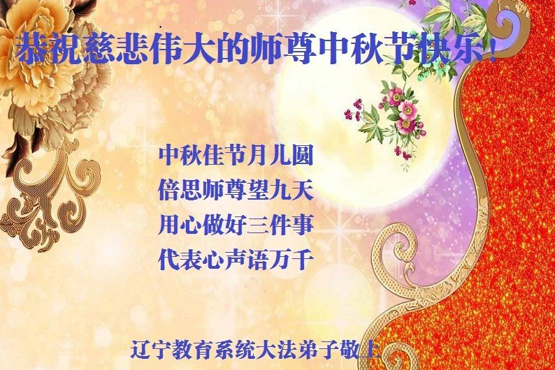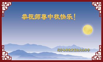 辽宁阜新教育界大法弟子恭祝师尊中秋快乐!盼师尊早回中国大陆! 黑龙江省佳木斯大学一老年五人学法小组中秋节日来临之际向师尊问候!