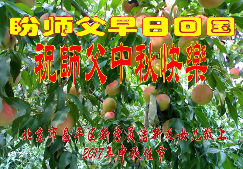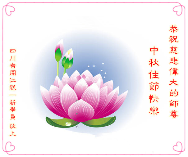 【明慧网二零一七年十月四日】 四川省达州市开江县乡村一大法新学员恭祝师尊中秋快乐!