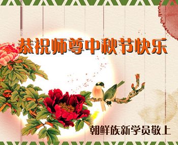 每逢佳节倍思亲,一年一度的中秋佳节又来临,弟子们想念恩师,感念恩师的慈悲救度。弟子们要学好法,做好三件事,勇猛精進,救度更多的众生,兑现史前大愿。让师尊少一份操劳,多一份欣慰! 朝鲜族新学员恭祝师尊中秋节快乐!