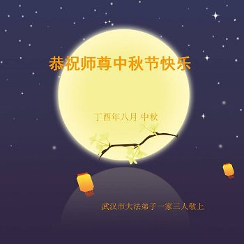 在中秋来临之际,我们恭祝师尊中秋快乐!我们坚持做好三件事,互相配合,协调好证实法中的事情,精進不停! 祝师尊中秋快乐! 湖北武汉武昌一学法组全体大法弟子敬上! 湖北武汉市一家三口大法弟子恭祝师尊中秋快乐!