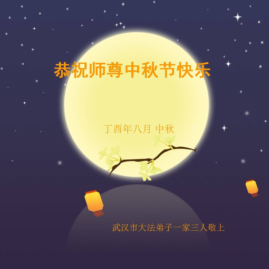 湖北武汉市江岸区一大法弟子全家恭祝师尊中秋快乐!