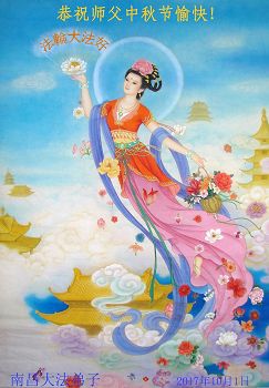 同修好!我是中国大陆江西省新余市一大法弟子,请转达我的祝愿,恭祝我们伟大的师尊中秋快乐!师尊辛苦了! 江西省南昌市一大法弟子恭祝师尊中秋节快乐!
