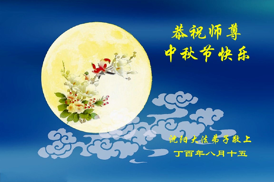 辽宁省沈阳市全体大法弟子恭祝慈悲伟大的师尊中秋节快乐!师尊您辛苦了!弟子们想念您! 辽宁省沈阳市两学法小组大法弟子恭祝师尊中秋节好! 辽宁省沈阳市一大法弟子及家人中秋节向师尊问好!衷心感谢师尊的慈悲苦度! 辽宁省沈阳苏家屯红菱生活区及八一全体大法弟子恭祝师尊中秋节快乐!