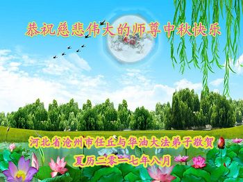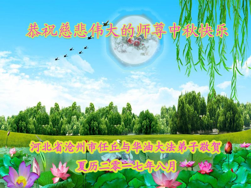 河北省沧州市沧县大法弟子敬贺 夏历二零一七年八月 河北省沧州市任丘市与华北石油大法弟子恭祝慈悲伟大的师尊中秋节快乐!