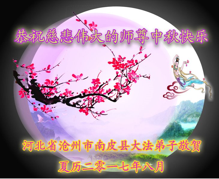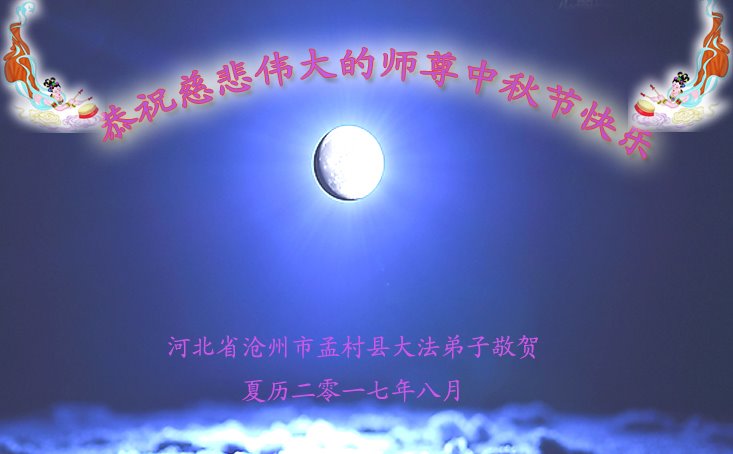 河北省沧州市孟村县大法弟子敬贺 夏历二零一七年八月 河北省沧州市南皮县大法弟子恭祝慈悲伟大的师尊中秋节快乐!