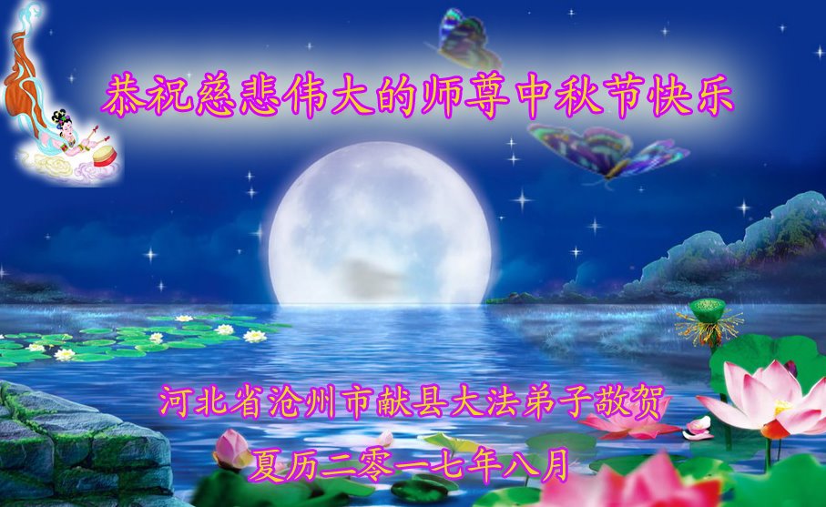 河北省沧州市献县大法弟子敬贺 夏历二零一七年八月 河北省沧州市新华区大法弟子恭祝慈悲伟大的师尊中秋快乐!