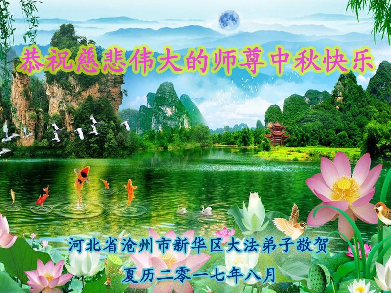 河北省沧州市泊头市大法弟子敬贺 夏历二零一七年八月 河北省沧州市沧县大法弟子恭祝慈悲伟大的师尊中秋节快乐!