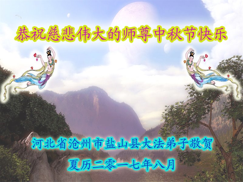 河北省沧州市盐山县大法弟子敬贺 夏历二零一七年八月 河北省沧州市运河区大法弟子恭祝慈悲伟大的师尊中秋节快乐!