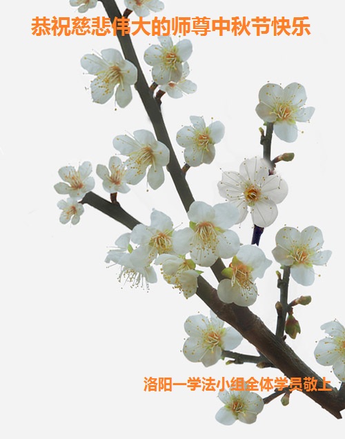 我们多学法,添正念,配合好,多救人,听师父的话,踏踏实实的做好三件事,跟上正法進程,他日迎接师父回大陆过中秋! 叩拜师父! 河南洛阳莲梅学法小组恭祝师尊中秋快乐!