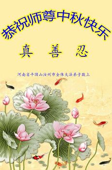 我们是助师正法的法徒,都会学好法,修去自己的一切人心与各种执着、尤其是各种怕心、各种顾虑心等影响做好三件事的因素。大法弟子的责任就要学好法、发正念、讲真相救度世人,三件事都做好,是历史赋予大法弟子的使命,是师父所要的,我们一定要做好。请师父放心,我们一定能做好,不负师父所愿。走正证实法的路,直至正法成功。 河南省濮阳市学法小组大法弟子祝师尊中秋节快乐!