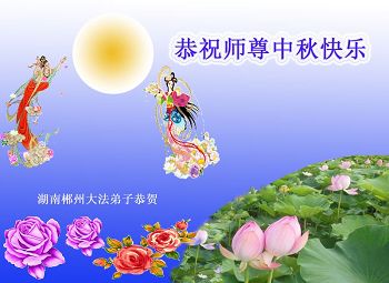我们一定静心学好法,时时向内找,修好自己,讲好真相,多救众生。弟子期盼与师父团聚的一天! 湖南省郴州市安仁县全体大法弟子恭祝师尊中秋节快乐!