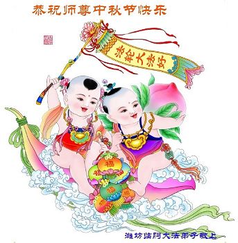 修炼的路上离不开师尊的慈悲呵护和点悟,弟子无以回报,唯有做好师尊要求的三件事,兑现自己的誓约,多救人,来回报师尊!弟子一定精進实修,让师尊少一份操劳,多一份欣慰。唯愿师尊笑! 全体山东省潍坊市寿光市大法弟子叩拜师尊中秋快乐!