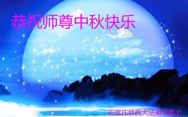 师父辛苦了!弟子无法用语言表达师父的慈悲救度,唯有做好三件事以报师恩。 河北省石家庄一大法弟子恭祝师父中秋节快乐!