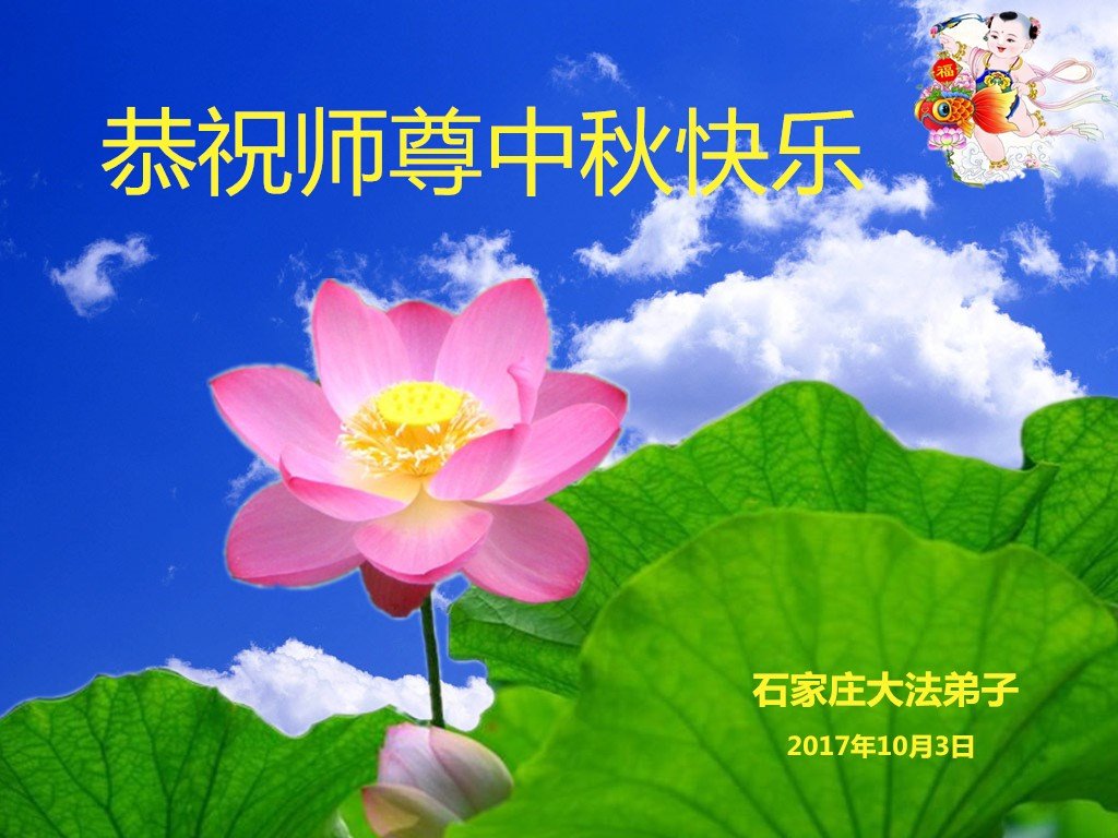 【明慧网二零一七年十月四日】 河北省石家庄市新华区一学法小组恭祝师尊中秋快乐!