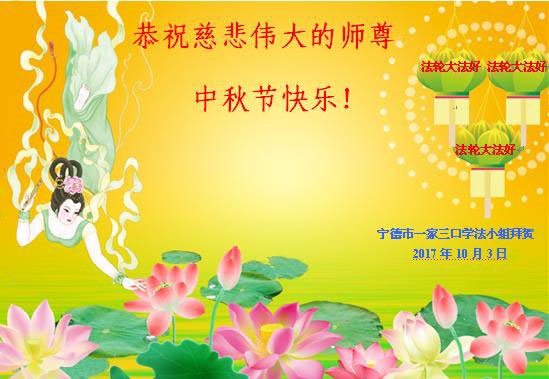 恭祝慈悲伟大的师尊中秋节快乐!谢谢师父! 福建省福州市一大法弟子携家人恭祝师尊中秋佳节快乐!