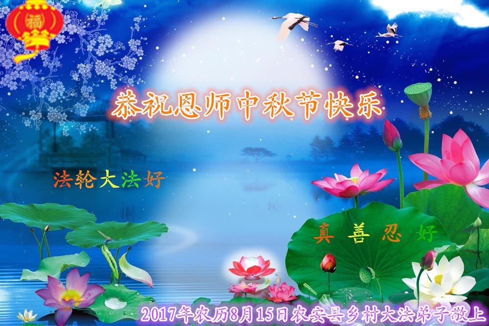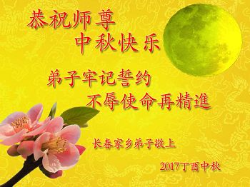 【明慧网二零一七年十月四日】 吉林省长春家乡大法弟子恭祝慈悲伟大的师尊中秋节快乐!