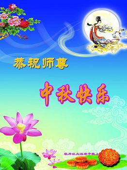 今天是中秋节,是团圆的日子。师尊,大陆弟子想念您,弟子想念您,盼您早日回归。过节了,弟子只能送上来问候:祝师尊中秋节快乐!感谢师尊慈悲苦度。师尊您辛苦啦,叩首,再叩首,三叩首。谢谢师父!合十 黑龙江省牡丹市大法弟子与丈夫同修及家人恭祝师尊中秋佳节快乐!