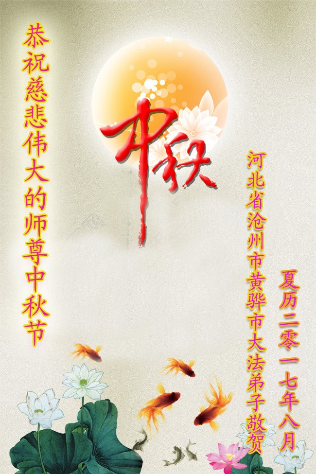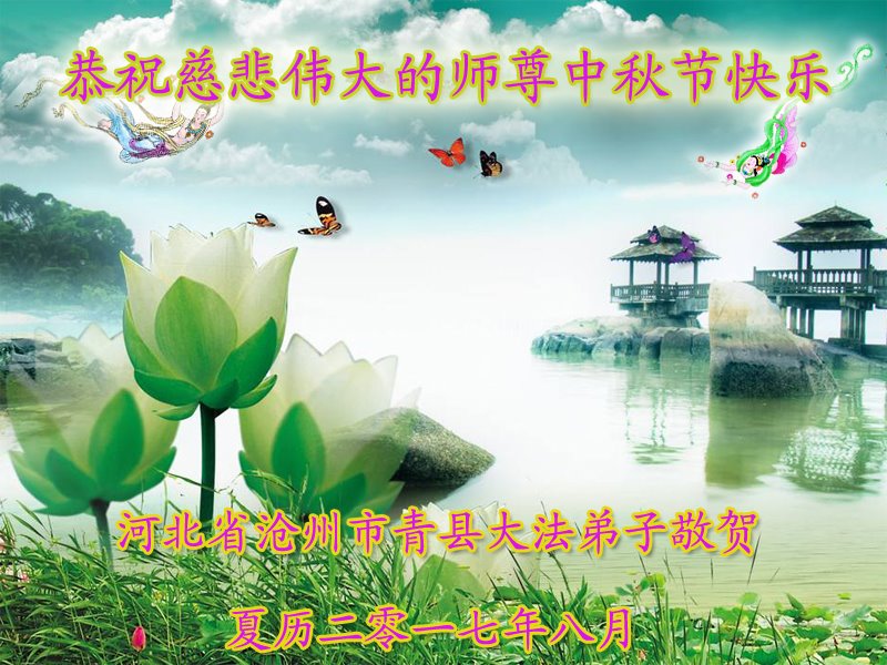 河北省沧州市黄骅市大法弟子敬贺 夏历二零一七年八月 河北省沧州市青县大法弟子恭祝慈悲伟大的师尊中秋节快乐!