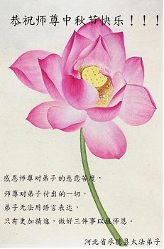 师尊好!弟子想念您!弟子没有见过师父,盼望师父早日归来。 河北大法弟子恭祝师尊中秋快乐!