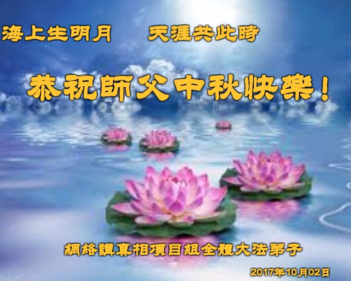 【明慧网二零一七年十月四日】 河北省沧州市黄骅市大法弟子恭祝慈悲伟大的师尊中秋节快乐!