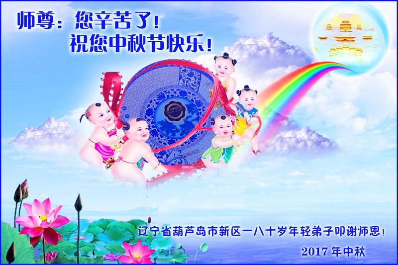 辽宁省葫芦岛地区大法弟子全家恭祝师尊中秋快乐!