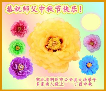 尊敬的师父好! 中秋节到了,我们学法小组五位大法弟子,在这里恭祝师父中秋节快乐! 弟子们切记师父教诲,多学法,认认真真,集中念头的学好法。修好自己,抓紧时间多救人,兑现自己誓言,完成好自己的使命,带着众生圆圆满满的跟师父回家。 谢谢师父救度之恩! 湖北荆门市大法弟子学法小组恭祝师父中秋节快乐!
