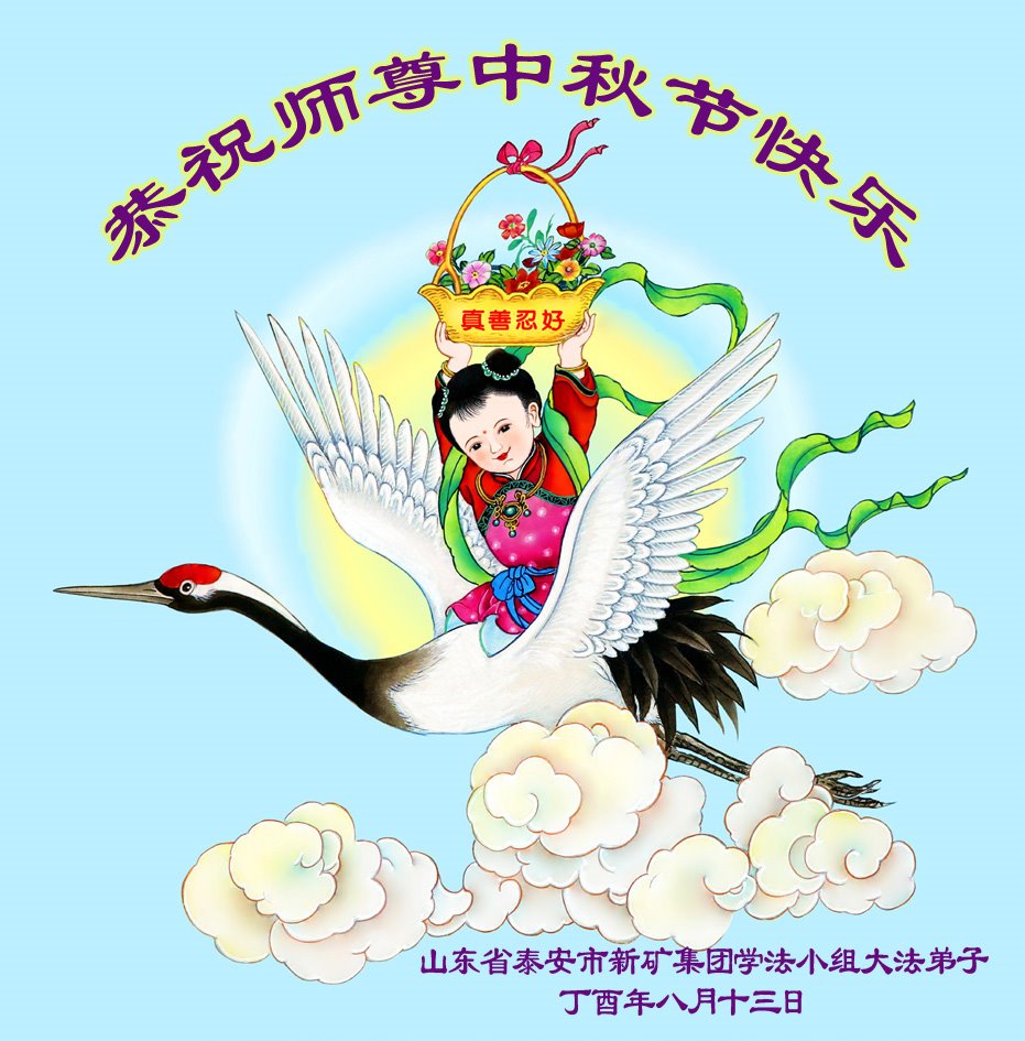 一年一度的中秋节又要来临,濮阳市全体大法弟子带着对师尊浓浓的思念,遥祝师尊中秋节快乐!弟子们唯有精進,才能报师恩!在此,叩谢师恩! 山东潍坊大法弟子敬祝师尊中秋节快乐!