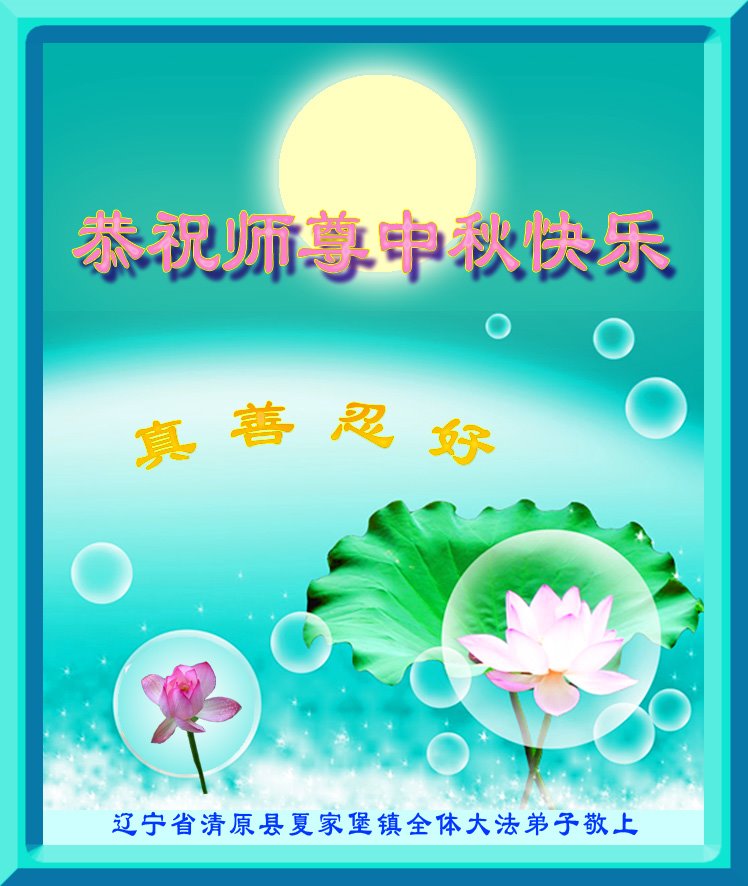 辽宁省抚顺市清原县夏家堡镇全体大法弟子恭祝师尊中秋快乐! 江苏省连云港市东海县全体大法弟子恭祝慈悲、伟大的师尊,中秋快乐!谢谢师父!师父辛苦了!