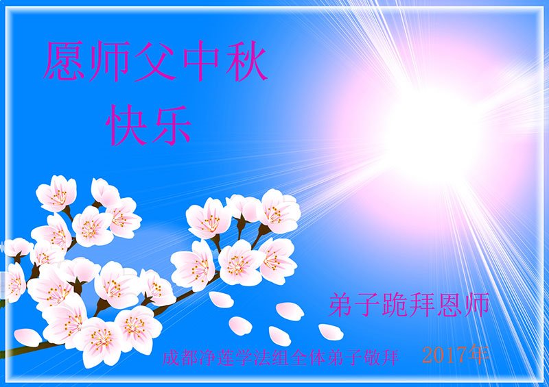 四川省成都净莲学法组全体大法弟子恭祝师父中秋快乐!