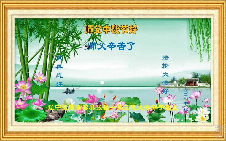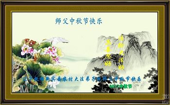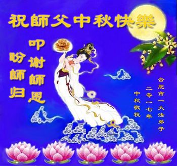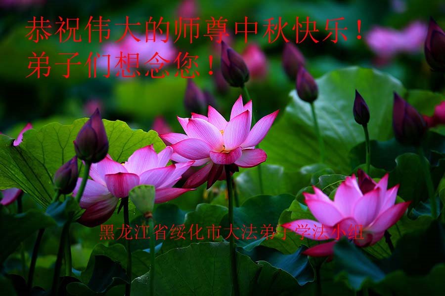 弟子的每一点進步都离不开师尊的精心保护,艰难的岁月里是师尊把弟子呵护、启迪弟子的正念。我们一定珍惜师尊用巨大的承受给我们延续来的时间,精進实修、踏踏实实的做好三件事,跟师尊回家。我们大陆全体大法弟子非常想念师尊,并向师尊合十叩拜! 山东省邹城市大法弟子一家恭祝师尊中秋快乐!