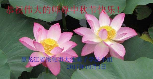 黑龙江省绥化市大法弟子学法小组恭祝师尊中秋节快乐!