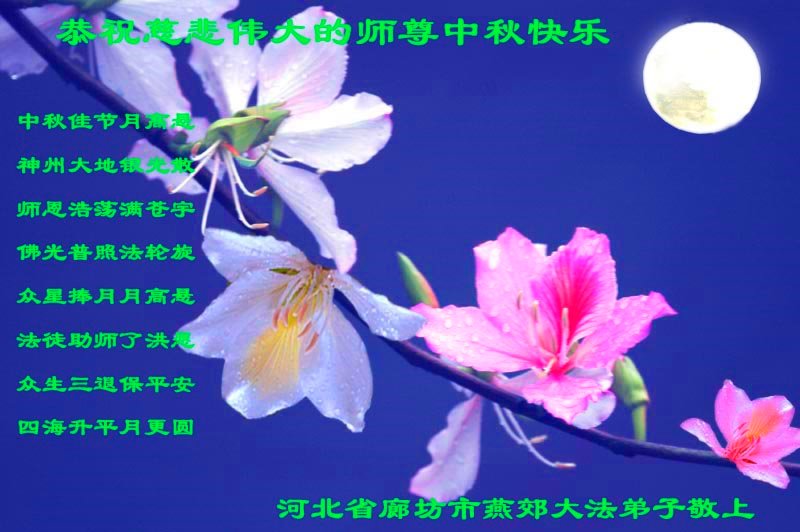 河北省廊坊市燕郊大法弟子恭祝慈悲伟大的师尊中秋快乐!