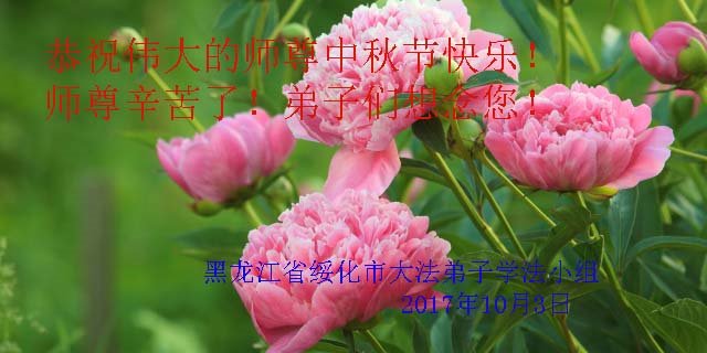 黑龙江省绥化市大法弟子学法小组恭祝师尊中秋节快乐!