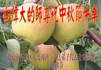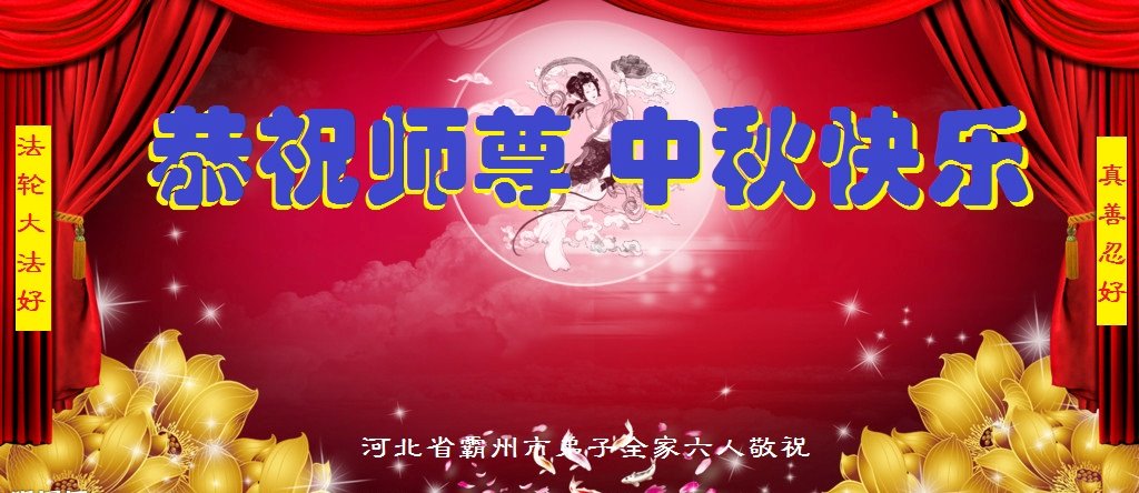千言万语也表达不了弟子们对您的感恩,在这中秋佳节到来之际,向您献上最诚挚的祝愿,祝师父中秋节快乐!师父您辛苦了! 北京怀柔九渡河一大法弟子代表全家向伟大的师尊祝中秋节快乐!