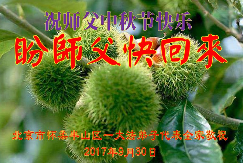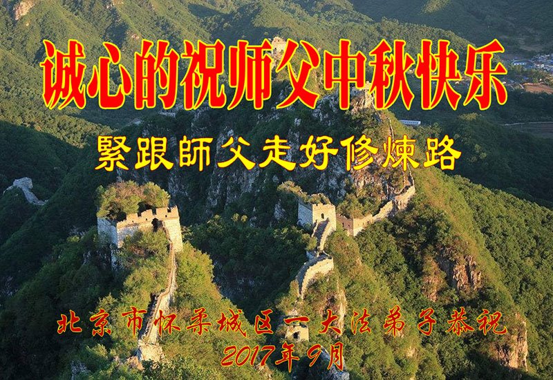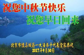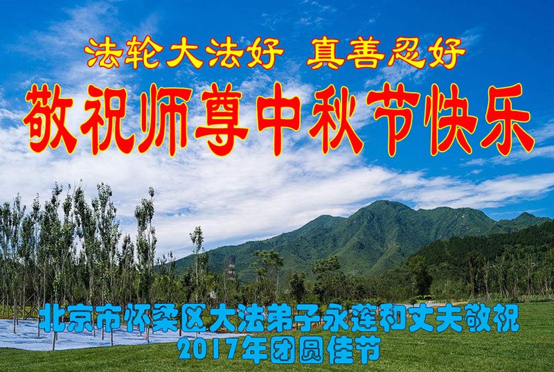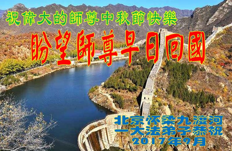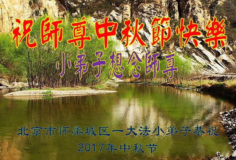 北京怀柔九渡河一大法弟子祝伟大的师尊中秋节快乐!盼望师尊早日回国!