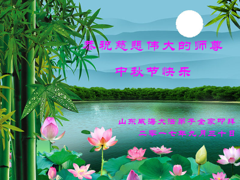 山东威海市大法弟子全家恭祝慈悲伟大的师尊中秋节快乐!