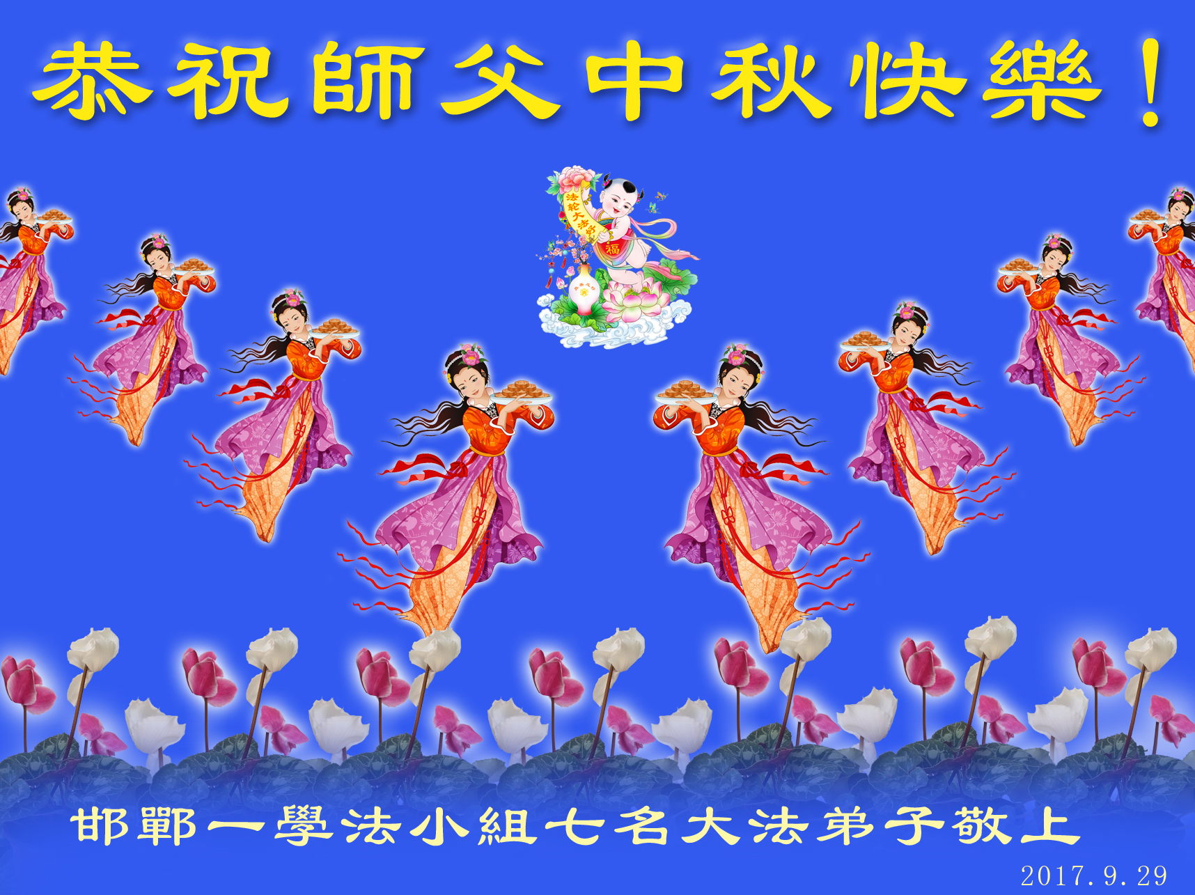 河北省邯郸市永年一大法弟子恭祝师父中秋快乐! 河北邯郸市一学法小组七名大法弟子恭祝师父中秋快乐!