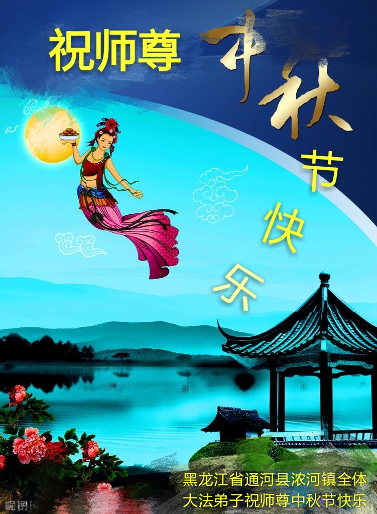 中国大陆大法弟子恭祝师尊中秋节快乐! 黑龙江省哈尔滨市通河县浓河镇一学法小组祝师尊中秋节快乐!
