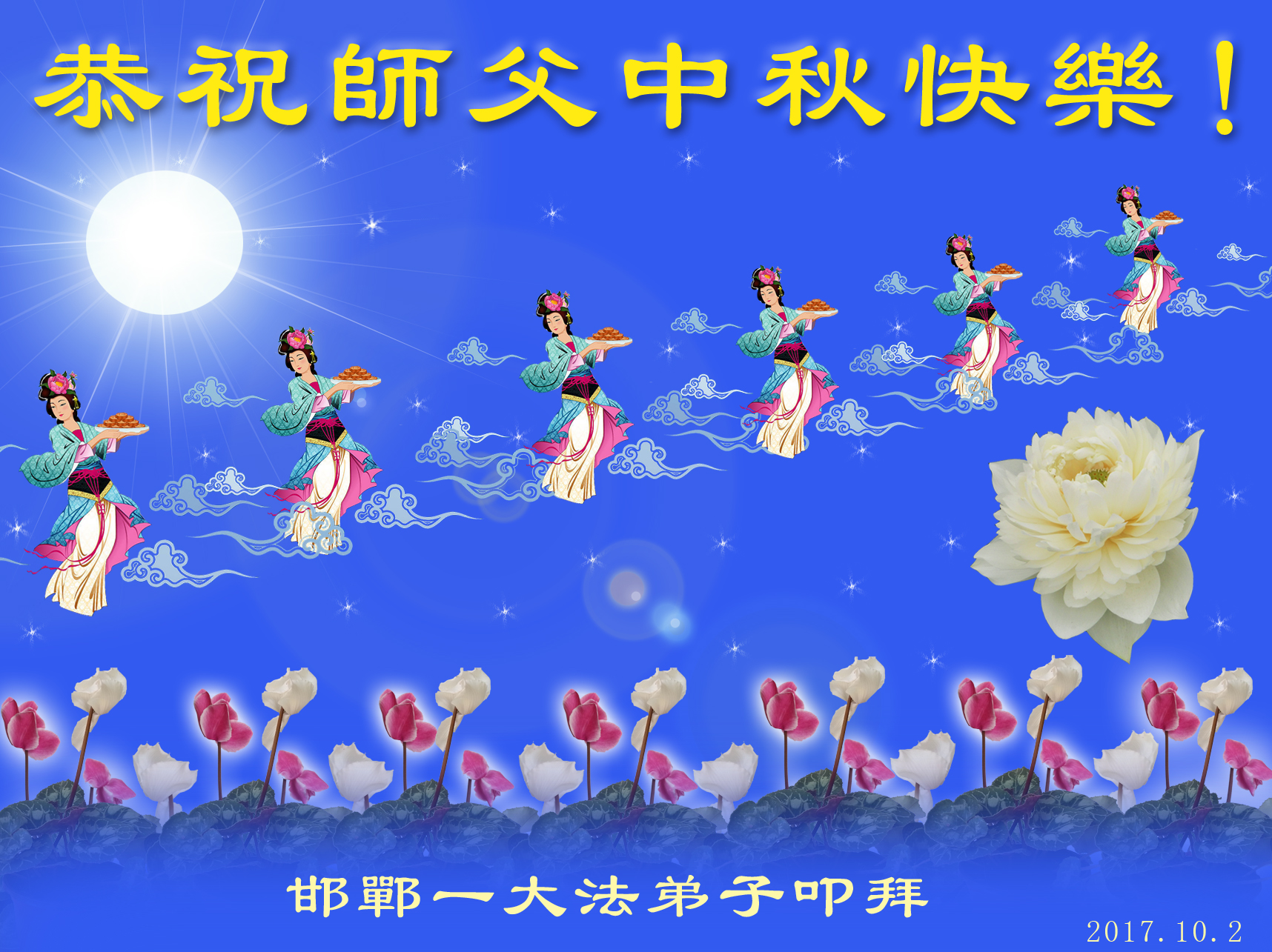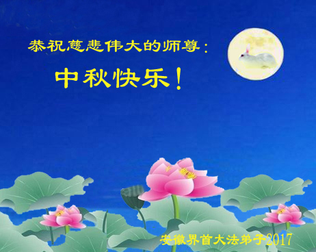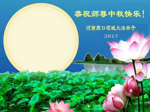 2017中秋佳节来临,弟子怀着无比思念和感恩的心向慈悲伟大的师尊问好,恭祝师尊中秋快乐!师父辛苦了! 河南周口沈丘全体大法弟子恭祝师尊中秋快乐!