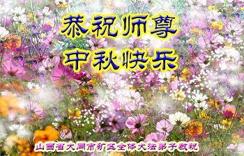 师父您好: 弟子跪拜师父,师父辛苦了,恭祝慈悲伟大的师父中秋节快乐! 沈阳市大东区一学法小组 山西省大同市矿区全体大法弟子恭祝师尊中秋快乐!