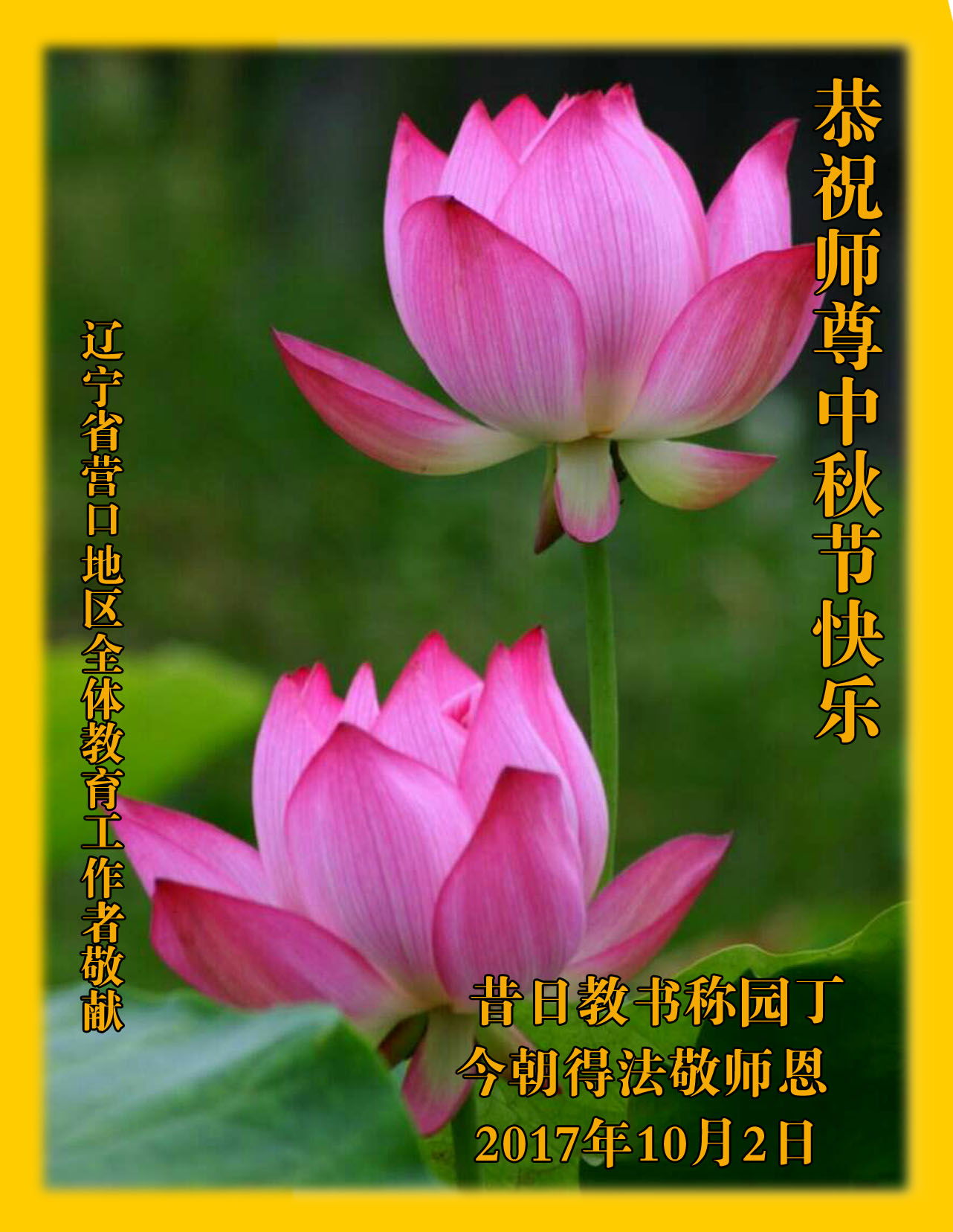 辽宁省营口地区所有教育工作者大法弟子恭祝师尊中秋节快乐!