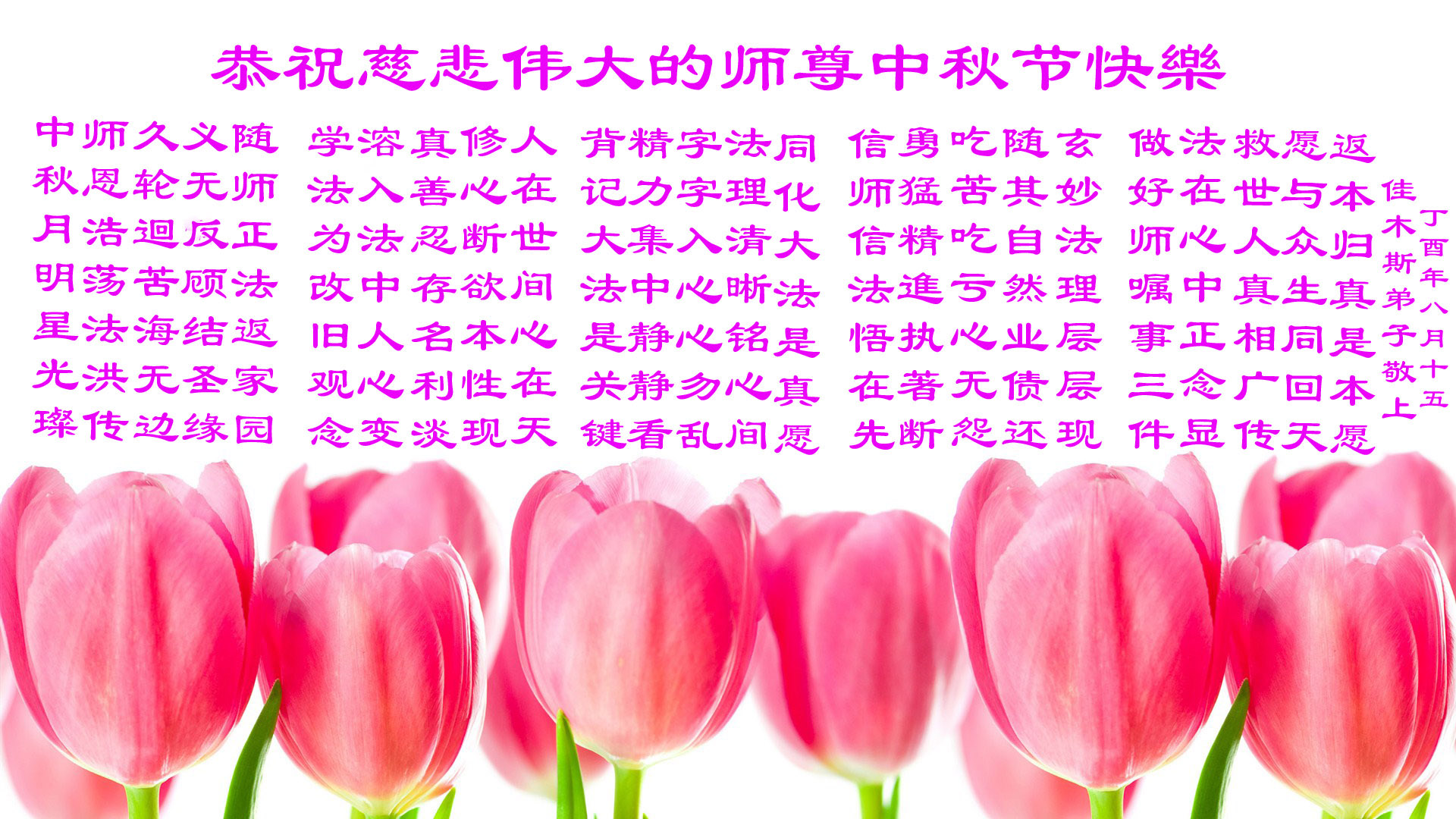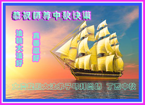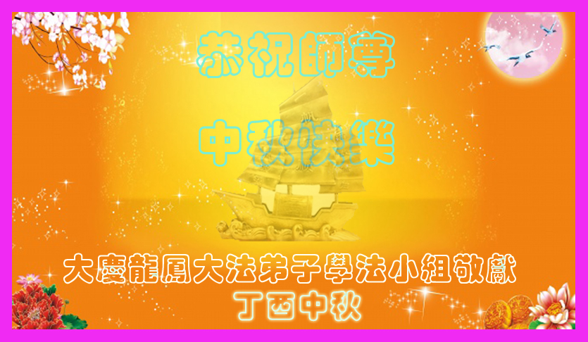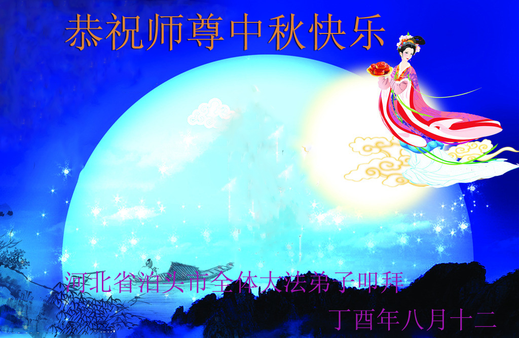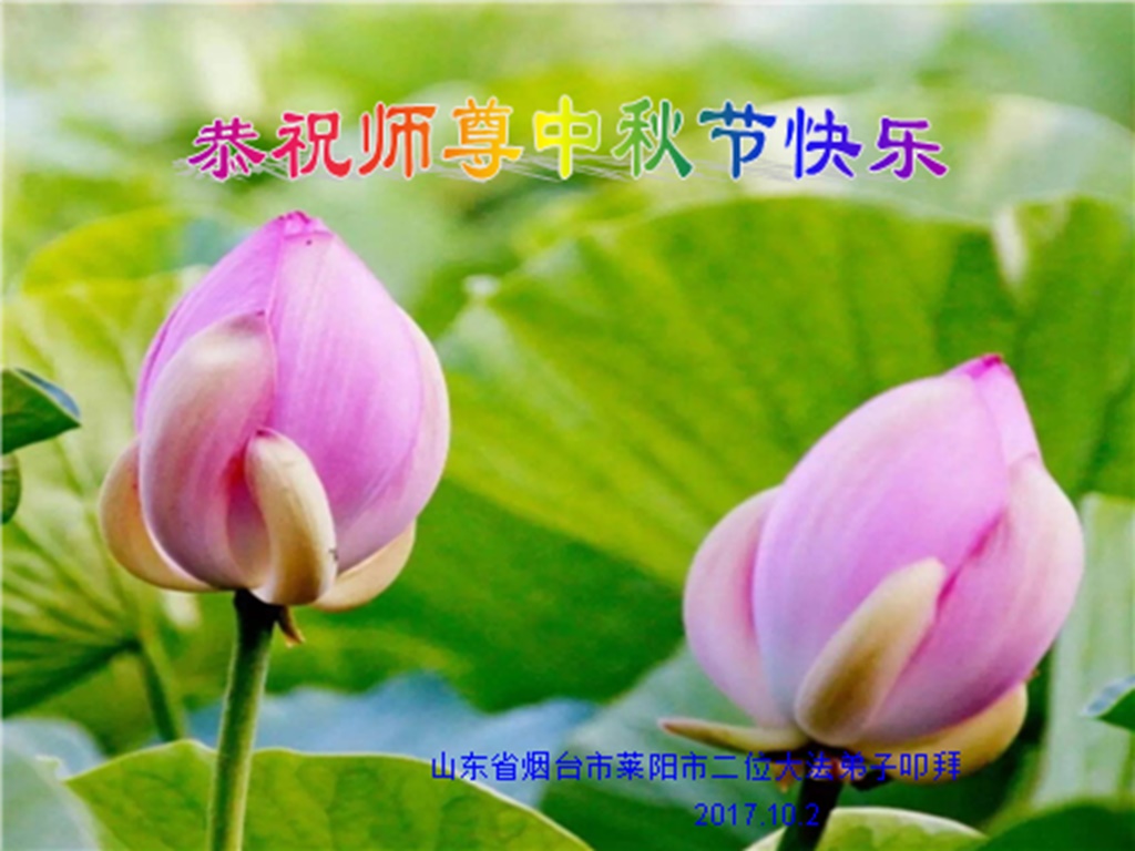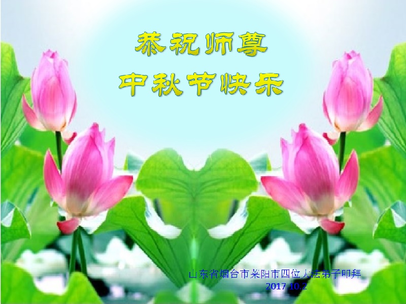 师父中秋好! 哈尔滨三姐妹请师父放心,在正法的最后时刻,我们一定不辜负师父的期盼,认真学法,修好自己,多救人,做一个合格的大法弟子。 辽源市大法弟子恭祝慈悲伟大的师尊中秋快乐!