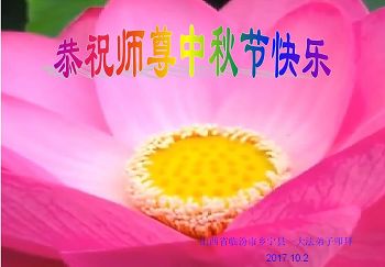 师父您好! 师父中秋节快乐!师父您辛苦了,为弟子操心了。弟子们只有精進实修好自己,才能更多的救度众生。谢谢师尊! 广东省深圳一大法弟子恭祝师尊中秋节快乐!